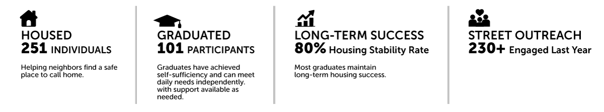Our dedicated team works with individuals experiencing homelessness to navigate the journey toward stability — from outreach and emergency support to long-term case management.